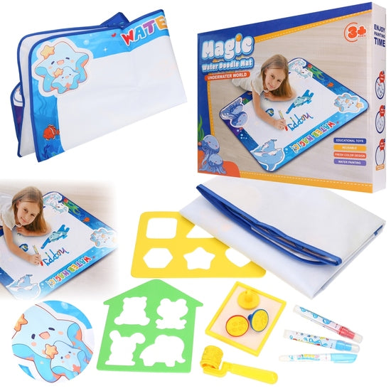 Z Kącikiem Malucha odkryjecie radość tworzenia na nowo! Nasza Magiczna Mata Wodna to gwarancja godzin fascynującej zabawy – i to bez brudnych rączek, ubrań czy ścian. Wystarczy napełnić pisaki czystą wodą, by na macie zaczęły pojawiać się kolorowe podwodne światy. Kiedy woda wyschnie, rysunki znikają, a zabawa zaczyna się od początku!